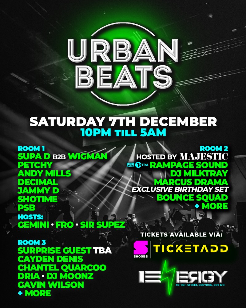 On Saturday 7th December all roads lead to Croydon for the returm of Urban Beats!!
